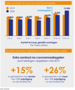 Er worden sinds de corona-crisis meer woningen te koop gezet. Vanwege de toegenomen onzekerheid halen woningbezitters de geplande verkoop van hun woning naar voren. Kopers trekken zich daarentegen nog weinig aan van de veranderde omstandigheden.